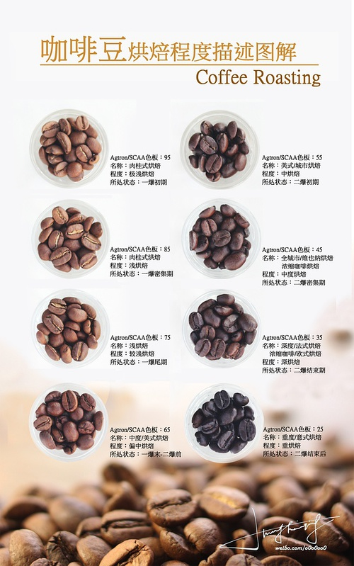 烘焙程度:中度烘焙,又名微中烘焙。褐色,約205~215度。